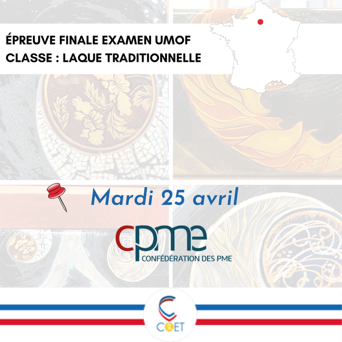 L'épreuve finale de l'examen "Un des Meilleurs Ouvriers de France" classe : Laque traditionnelle pour cette 27e session se déroulera le mardi 25 avril à la CPME de Puteaux.